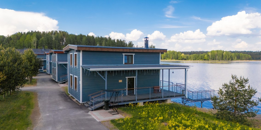 Двухэтажные коттеджи из сухостойной сосны прямо у воды, с собственным пирсом.