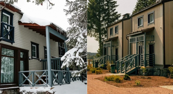 - три просторных коттеджа с уникальным дизайном, гостиной с камином, обеденной зоной и полностью оборудованной кухней. В коттеджах 3 и 5 две спальни, а в коттедже №7 три спальни и терраса-библиотека, которую также можно использовать как дополнительную спальню. В каждой спальне расположен собственный санузел с душем. В коттеджах 5 и 7 есть сауна.