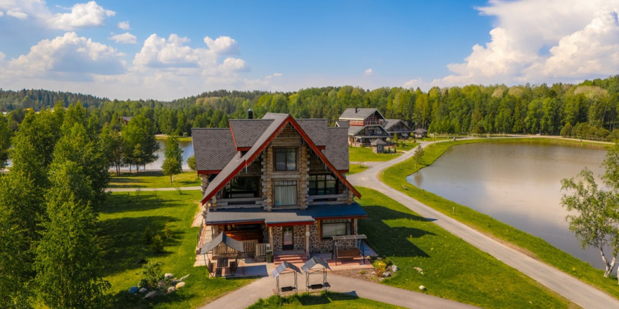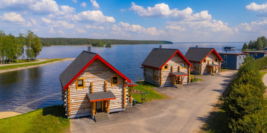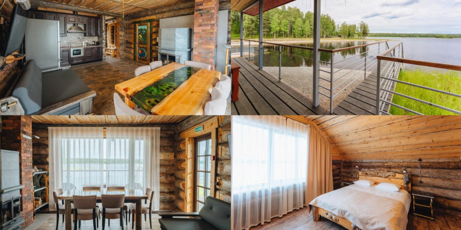 Двухэтажные коттеджи из сухостойной сосны прямо у воды, с собственным пирсом.