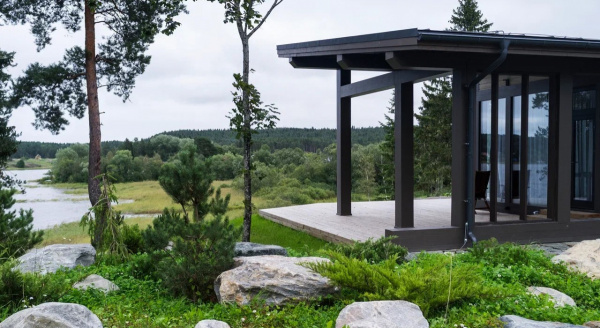 - четыре комфортабельных деревянных коттеджа с террасой, гостиной и двумя спальнями (в каждой спальне отдельный санузел в душем). С террасы коттеджей открываетс захватывающий вид на воды Ладожского озера,