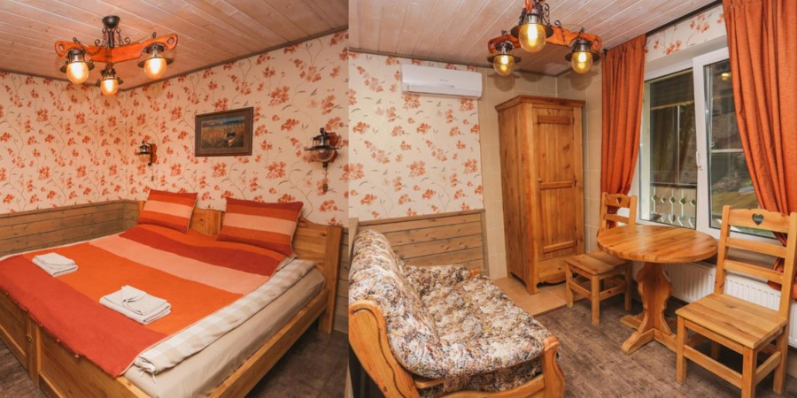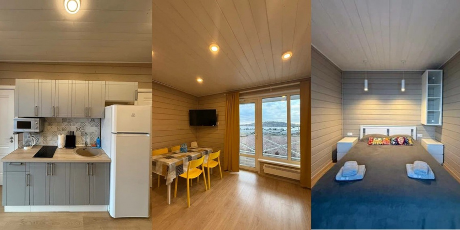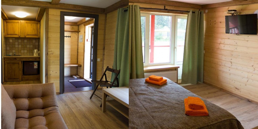 Гости проживают в двухместных номерах, объединенных в комплекс типа «таун-хаус», органично вписывающихся в природу и спроектированных специально так, чтобы почувствовать атмосферу уюта и покоя. В свой номер вы попадаете прямо с улицы через отдельный вход. А с вашего балкона, как и из окна, открывается вид на Ладожское озеро. В каждом номере имеются прихожая, спальная зона с деревянной мебелью «под старину», зона отдыха (диван, стол, TV, интернет), душ/туалет (фен, теплые полы), кондиционер. Диван может использоваться в качестве третьего спального места.
